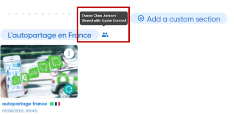 Once a section is shared, an icon will appear in front of the section to notify you that it has been shared. You will be able to see who is the owner of the search and the people with whom the section has been shared.