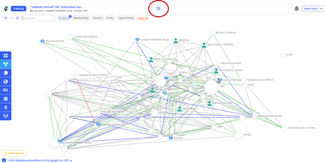 The "refresh" button allows you to relaunch a cartography at any given moment, updating it with the latest news since its last update.